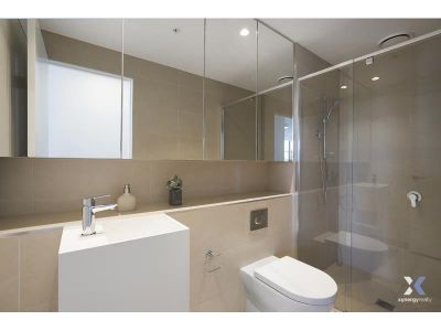 Both bedrooms include built-in robes, with the main bedroom enjoying its own ensuite for extra privacy. A second modern bathroom complements the layout, while the laundry adds everyday practicality. Additional features include a secure car parking space and video intercom entry, as well as access to building amenities such as the gym, pool, and garden areas.
