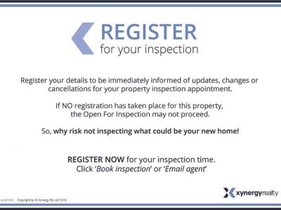 Open for inspections are subject to change and cancellations without notice, registering your details will ensure you are instantly notified. Pictures are for illustration purposes only.