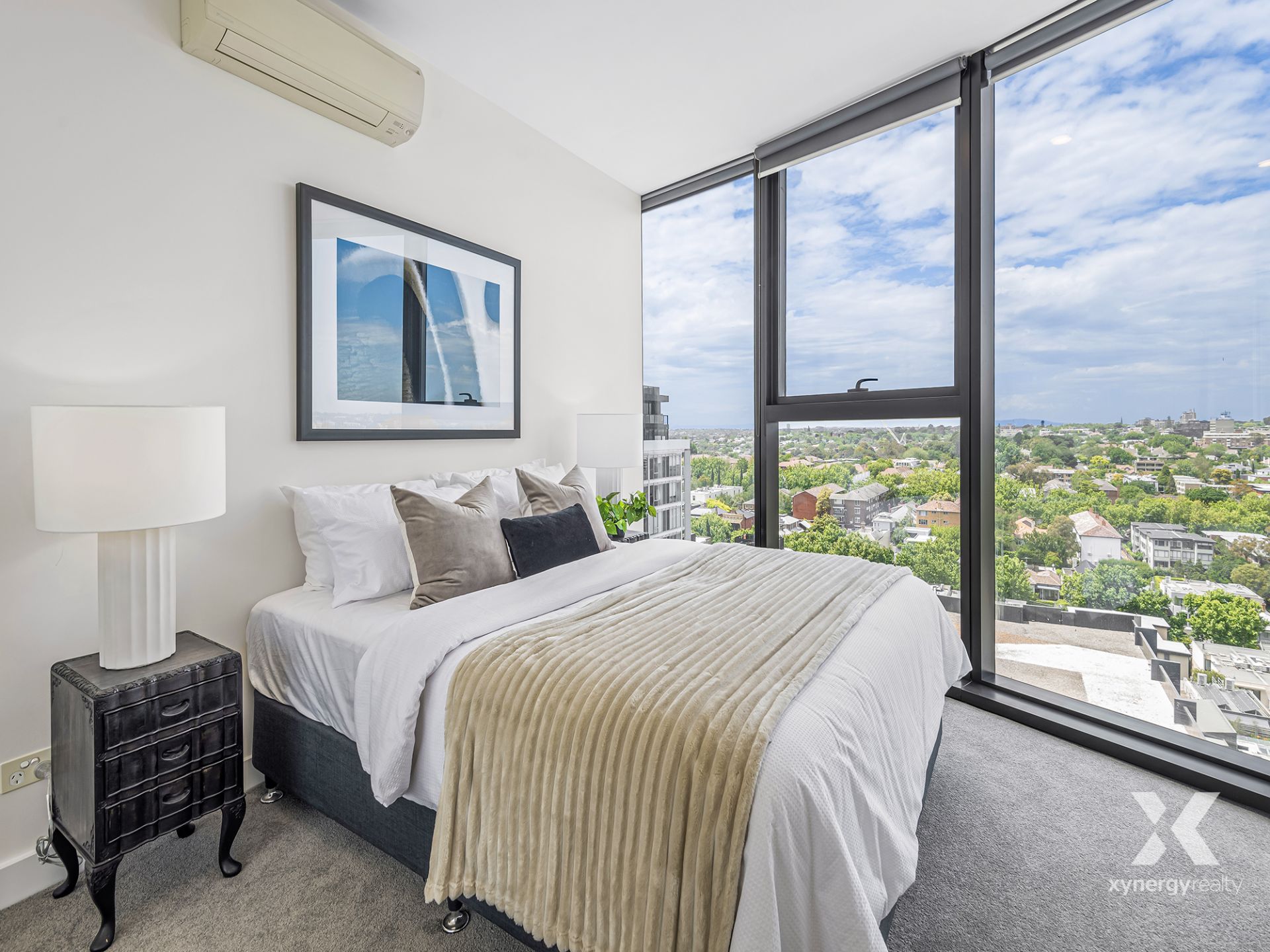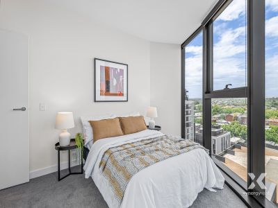 Experience the beauty of South East living with this exceptional, spacious corner apartment-a rare find in the market as these tightly-held units seldom become available. With floor-to-ceiling windows, this unit showcases breathtaking panoramic views of the blue sky and lush greenery of the South Eastern suburbs. The expansive 2-bedroom layout includes a seamlessly integrated living and dining area, newly renovated for a clean, elegant feel.