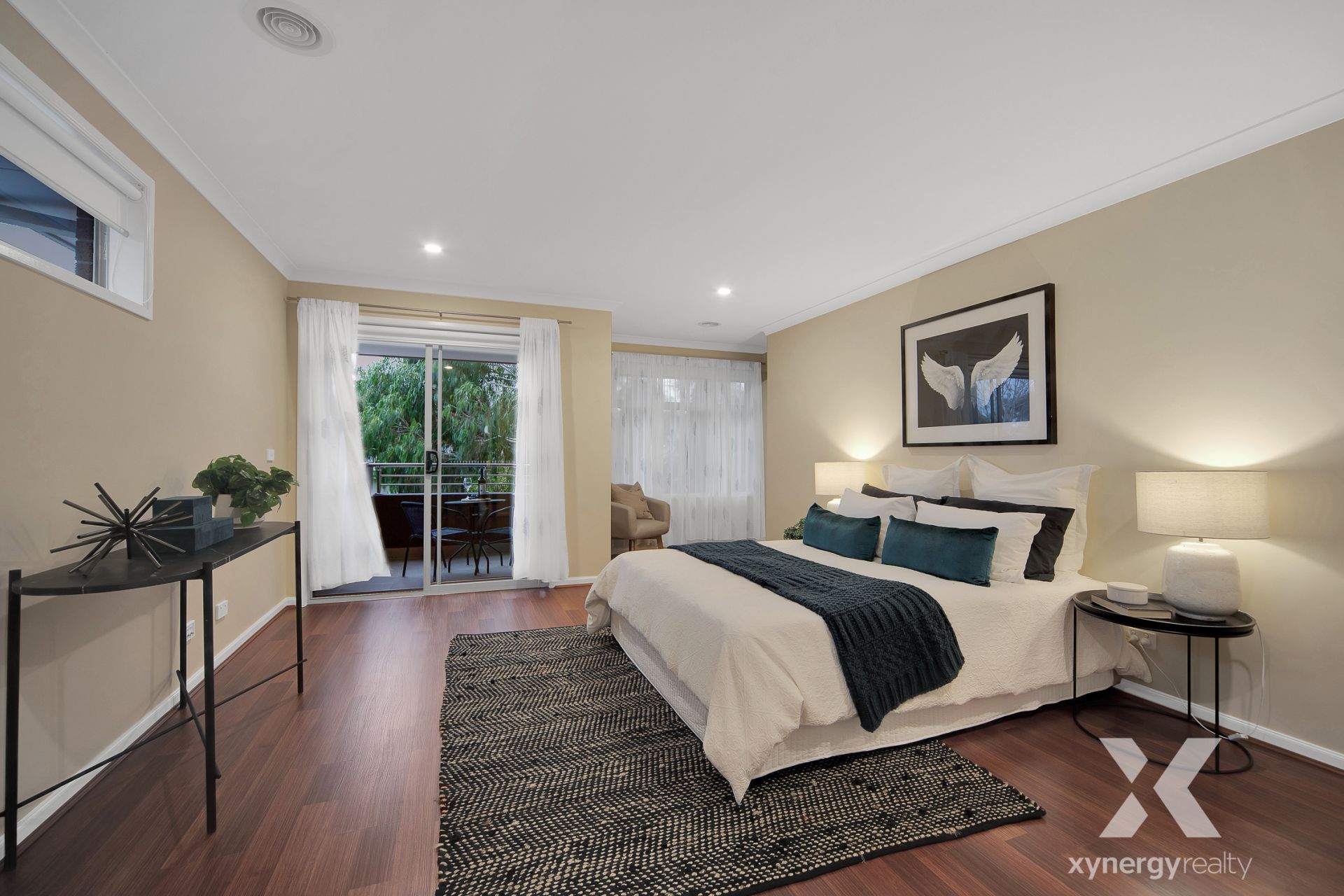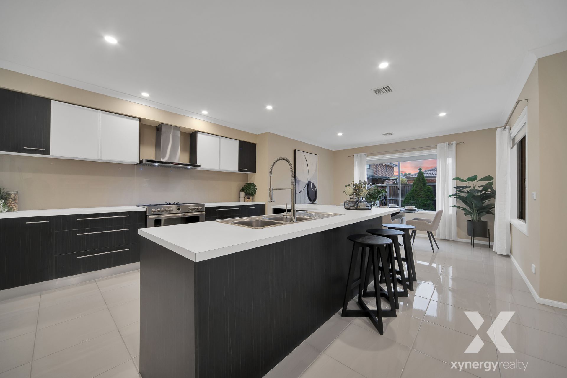 Overlooking the main meals space is the stylish galley kitchen, well-appointed with premium appliances, a sleek splashback, a generous walk-in pantry, and ample storage. A formal laundry with plenty of storage and direct access to the side yard adds to the home's practicality.